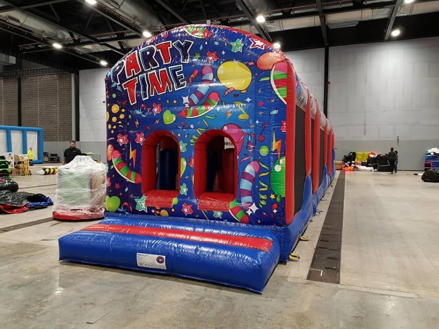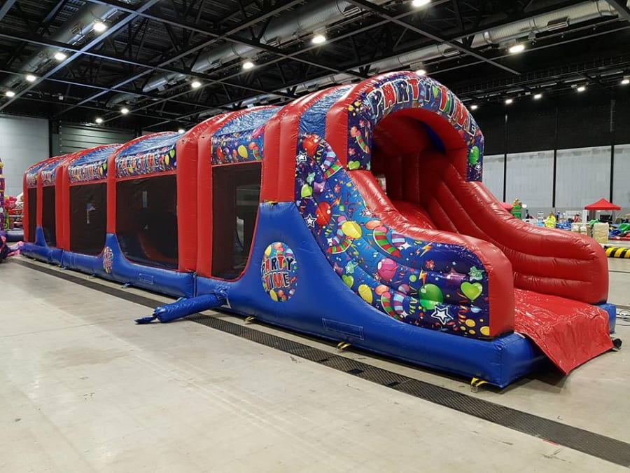 Great fun for adults and kids alike, comes complete with slide, big baf, up and over sections all included